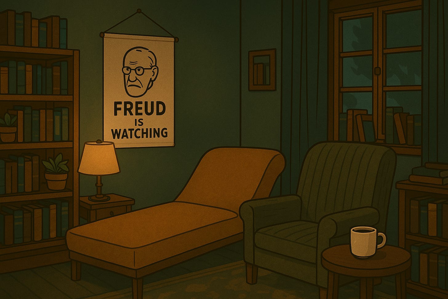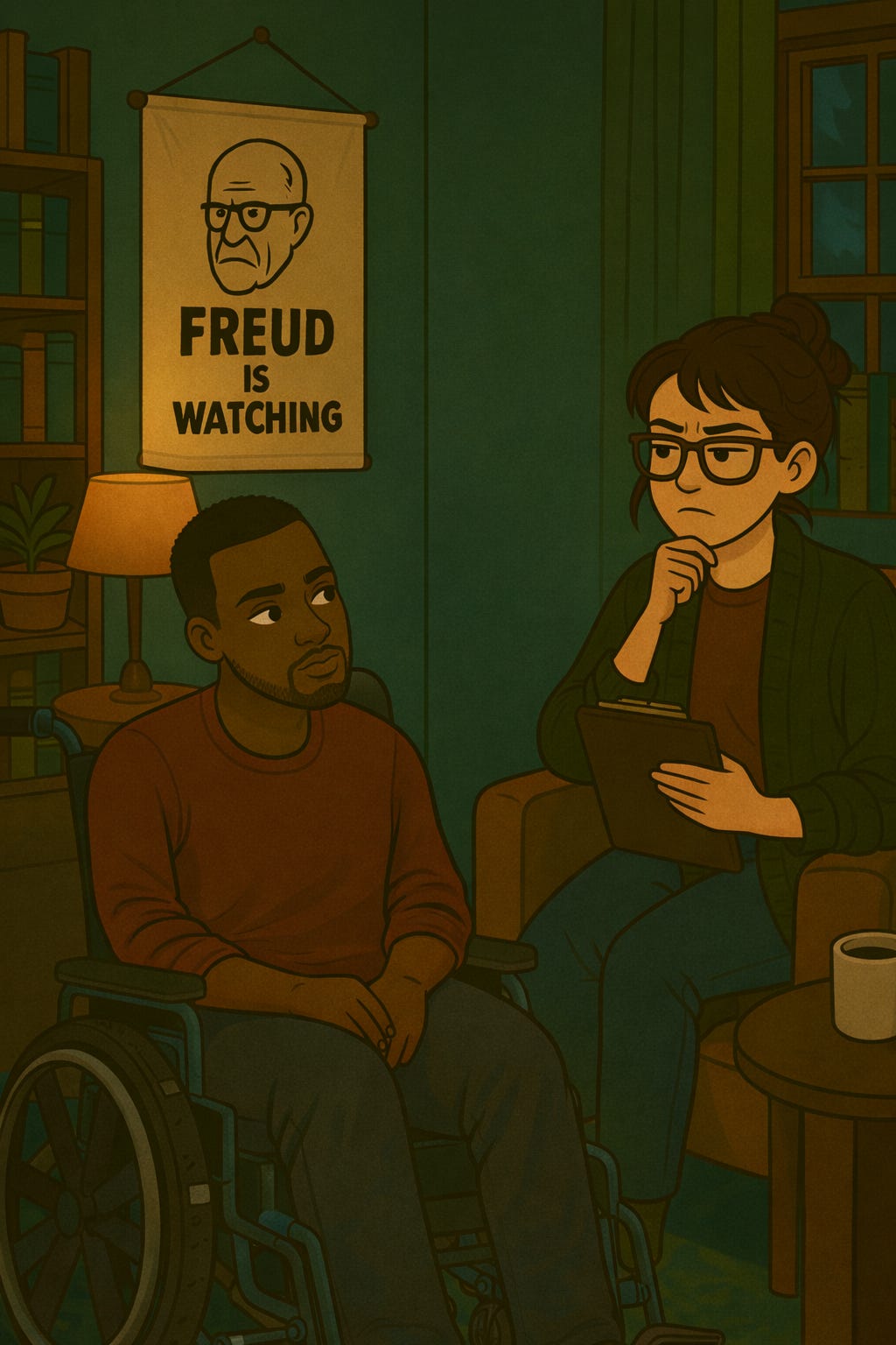 Disclaimer: This fictional exchange is intended for entertainment and reflection — not as a substitute for professional mental health care. While it contains emotional truths and therapeutic themes, it is not actual therapy. If you’re struggling, please reach out to a licensed clinician. Preferably one who won’t prescribe floor naps or video game recommendations, unless clinically justified.